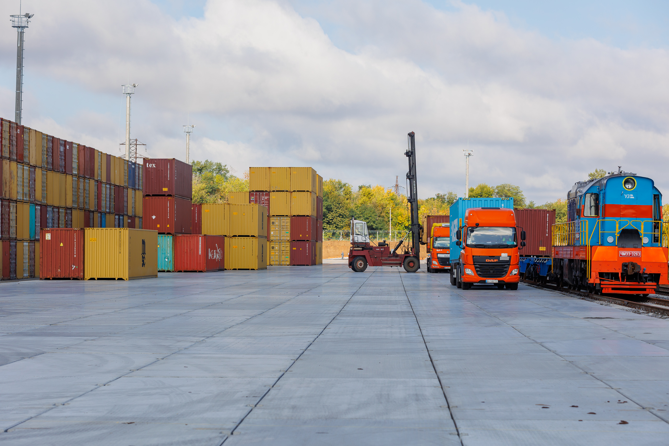 The terminal's location allows for the organization of regular container trains to both the ports of Greater Odesa and European seaports, including the ports of Gdansk, Hamburg, and Trieste.